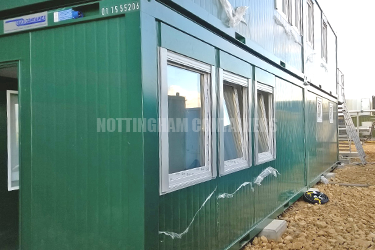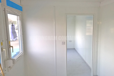 Various discussions followed the initial enquiry and a final construction specification was decided upon. We supplied four new 20ft flat pack offices each with two double glazed uPVC windows, a lockable aluminium roller shutter, an external door and full electrical package with sockets. One of these offices needed to provide toilet and shower facilities, so we bespoke fitted the plumbing on site to comply with WRAS. Access was required to the top level of the structure, so we custom built a staircase with a landing and supplied relevant support posts.